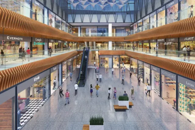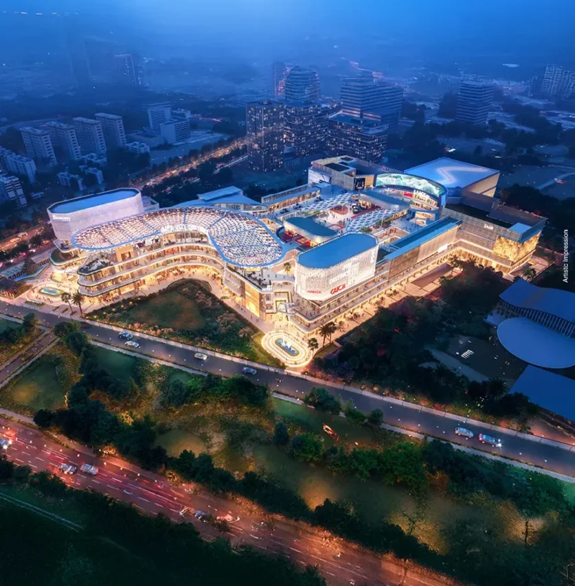 The project offers retail shops, office spaces, food courts, multiplex facilities, and entertainment zones suitable for various business needs.